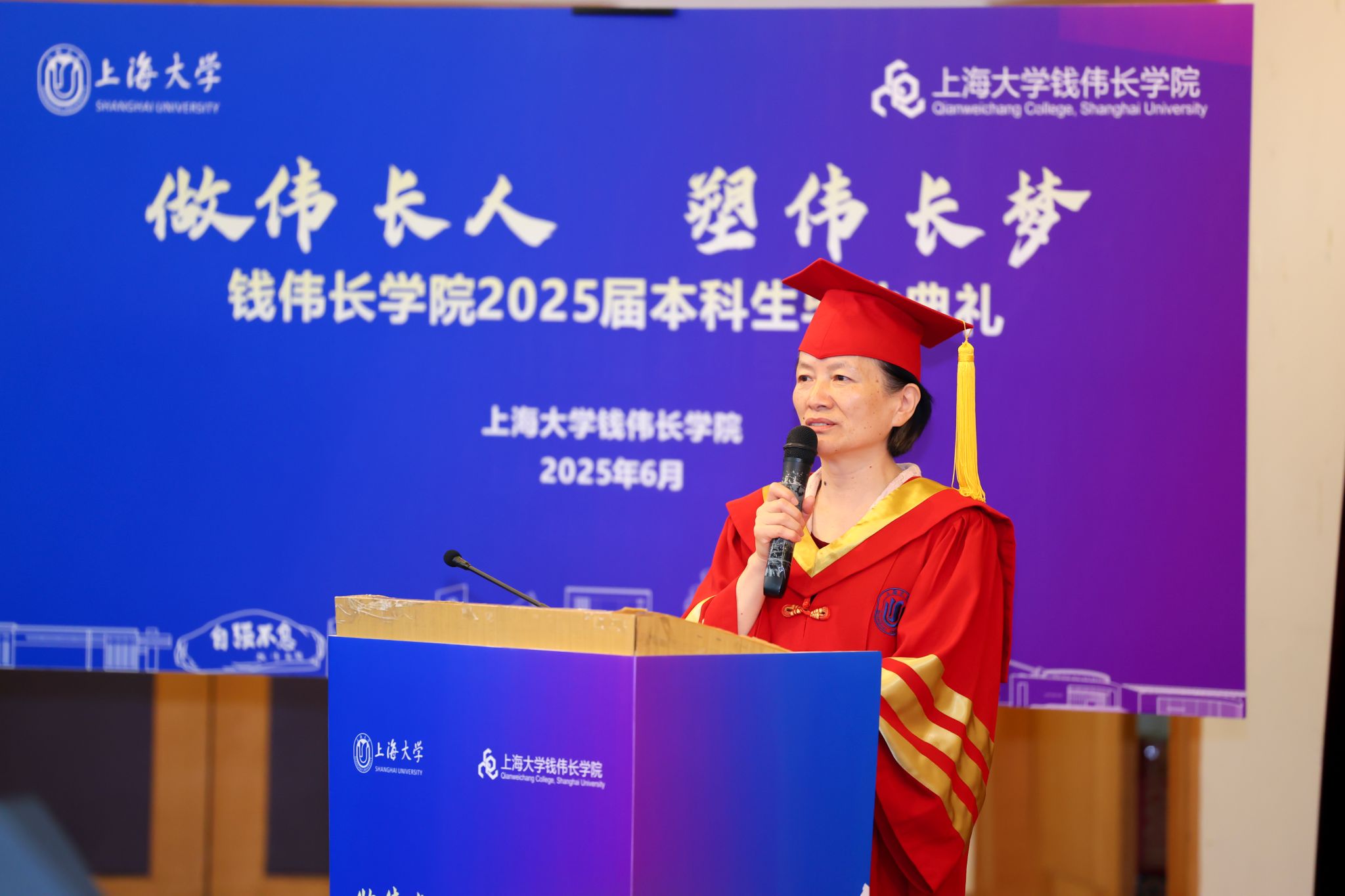 聂清副校长深情寄语2025届毕业生,回忆了和同学们的共同成长,表达了对毕业生们的祝贺和美好祝福。她为同学们四年来所取得的成就感到骄傲和自豪,也为同学们未来的无限可能感到由衷的期待。她说,每个人有每个人的坐标,每个人有每个人的精彩,希望同学们从追光而行到成长为别人的光,成为被别人需要的人,以时代的“解码者”“行动者”“弄潮儿”的姿态,在自己认定的领域绘就精彩的华章,成为最好的自己,回报社会国家。